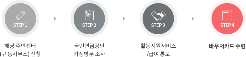 - 1 활동지원서비스 수급 자격 선정 (주민센터 신청 > 국민연금공단 심사)